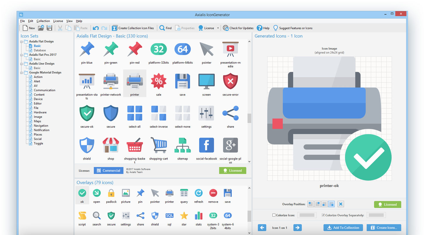 Customize your icons by adding overlays and colorizing items. Select options and generate your icons in one single click!